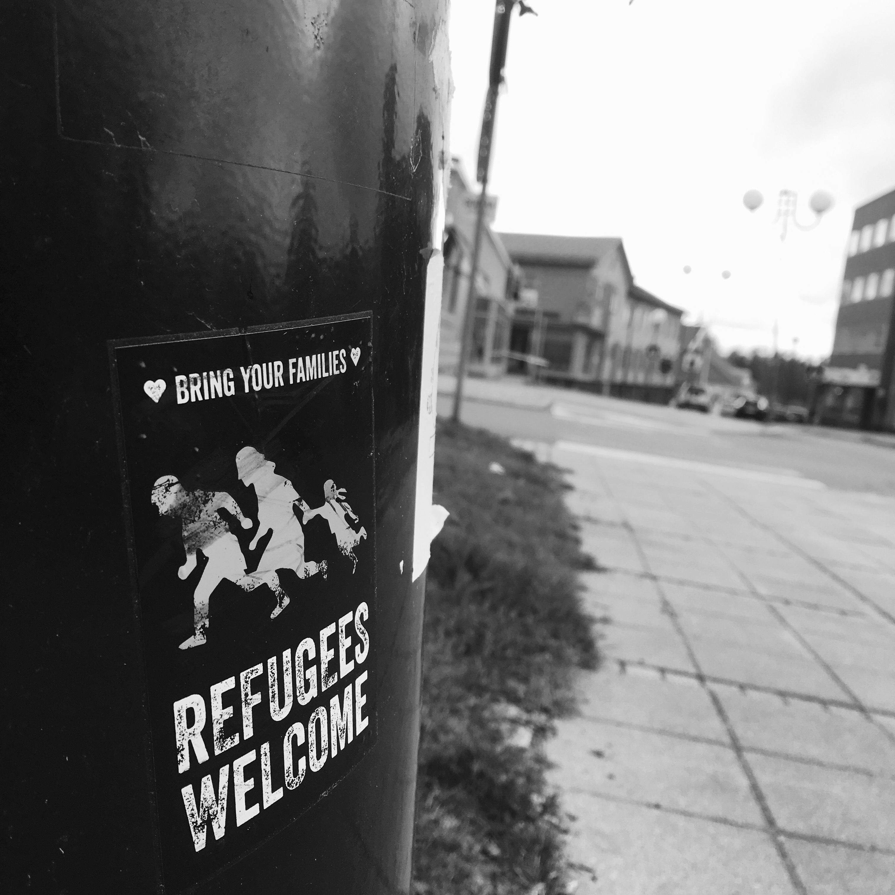 One of the first things I noticed when I got to Kiruna was a sticker that said, “Refugees welcome. Bring your families.” It was really touching, and as I walked around the city I saw maybe 50 of them, giving me both a sense of generosity, but also of something discomfiting. In the warmth of the welcome sticker, something much darker is suggested. I asked Maya and Mikael about the refugees, and they told me that just last year 50 refugees, mainly from Iraq and Afghanistan came to Junosuando. They arrived in November. Can you imagine? To arrive after such a journey–leaving your home and friends and place of birth, a temperate land with diurnal rhythms, making the often dangerous, gruelling, uncertain journey through unknown lands, navigating the harsh, competitive bureaucracies that confront running peoples with obstacle after obstacle, and then you arrive in a town of 350 people, north of the arctic circle just as the sun sets for winter. Some darkness.
