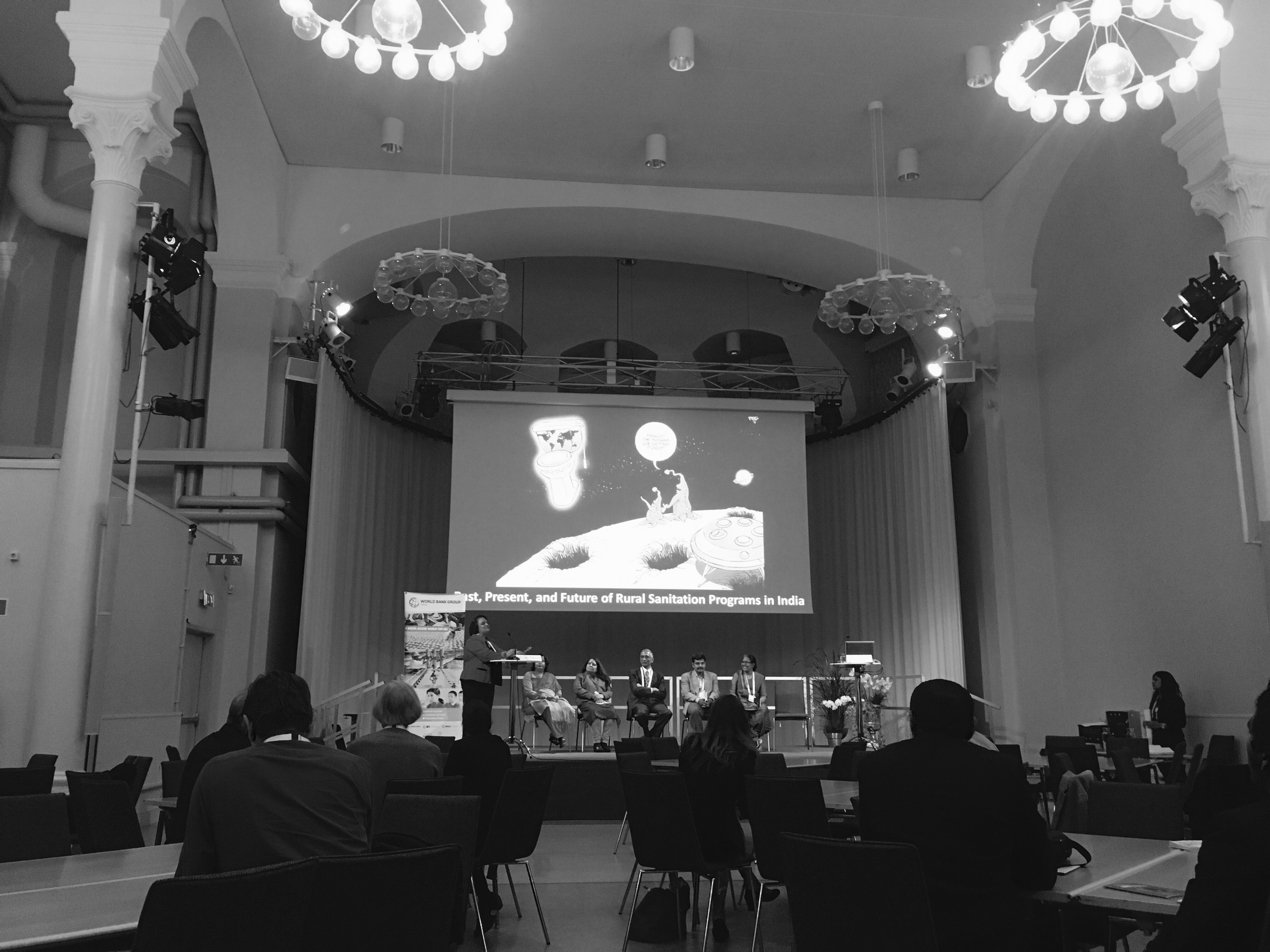 I attended a special session on Modi’s program Swachh Bharat, a national sanitation effort to encourage clean water and sanitation for all of India. Led by Parameshwaran Iyer, Secretary of India’s Drinking Water and Sanitation Department, a panel presented on the project and discussed the plans to make India ODF, open defecation free, by 2019. In India only 10% of wastewater is treated, the vast majority of India’s sewage flows unhindered into waterways, creating immense pollution that leads to water borne illness and ecological troubles.