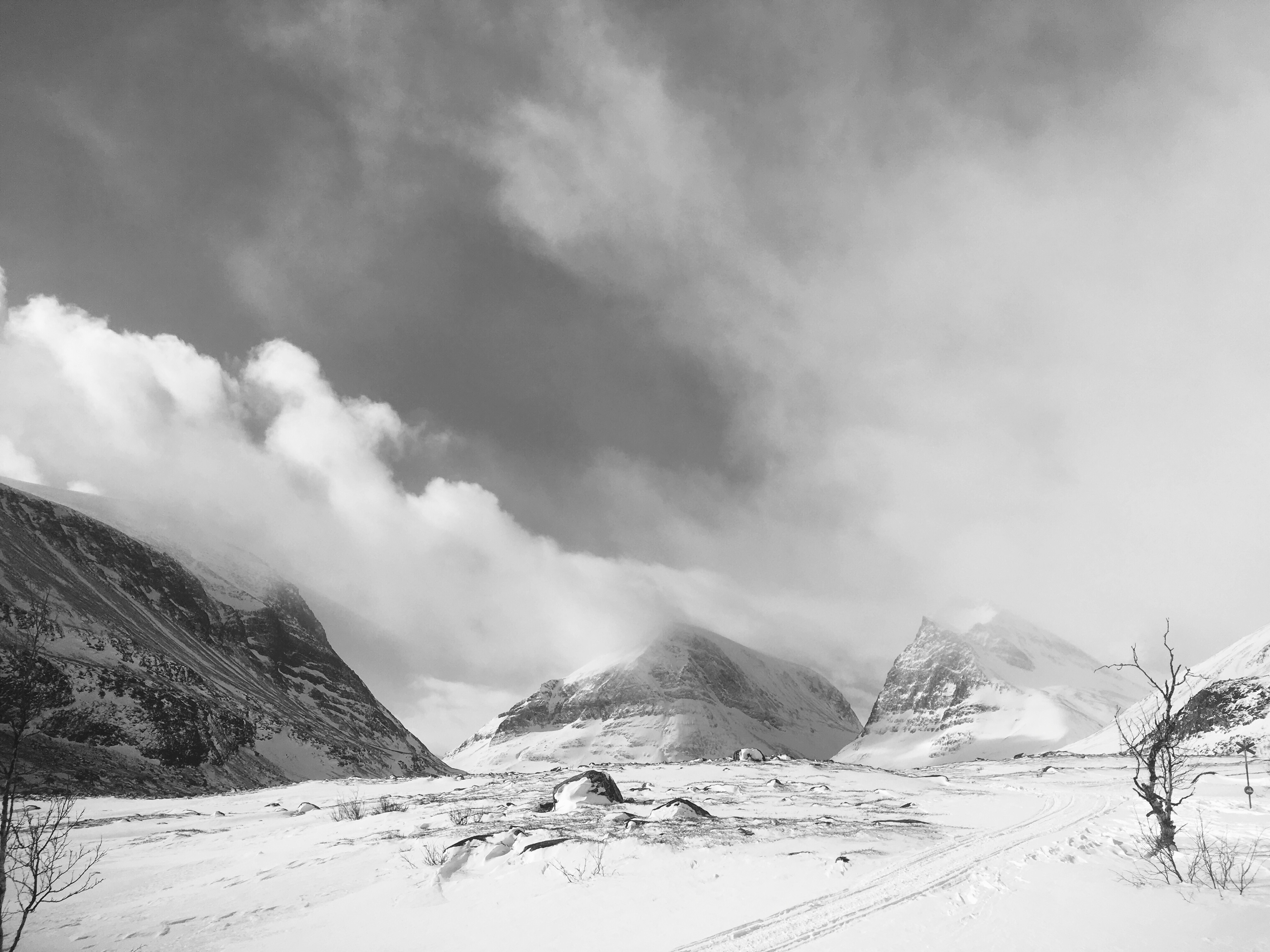Skiing from Nikkaluokta, looking up at the black granite cliffs and the wind waves of snow and ice that cross the nearly vertical faces lining the valley, I was fixated. Something inside of me felt at once exhilarated and unrestrained, the kilometers melted into the snow beneath my skis, numbers and language felt to mean nothing, effervescent reminders of how I learned to understand the world only one of an infinity of ways. The mountains breathed fresh air into my lungs and set my mind afire.