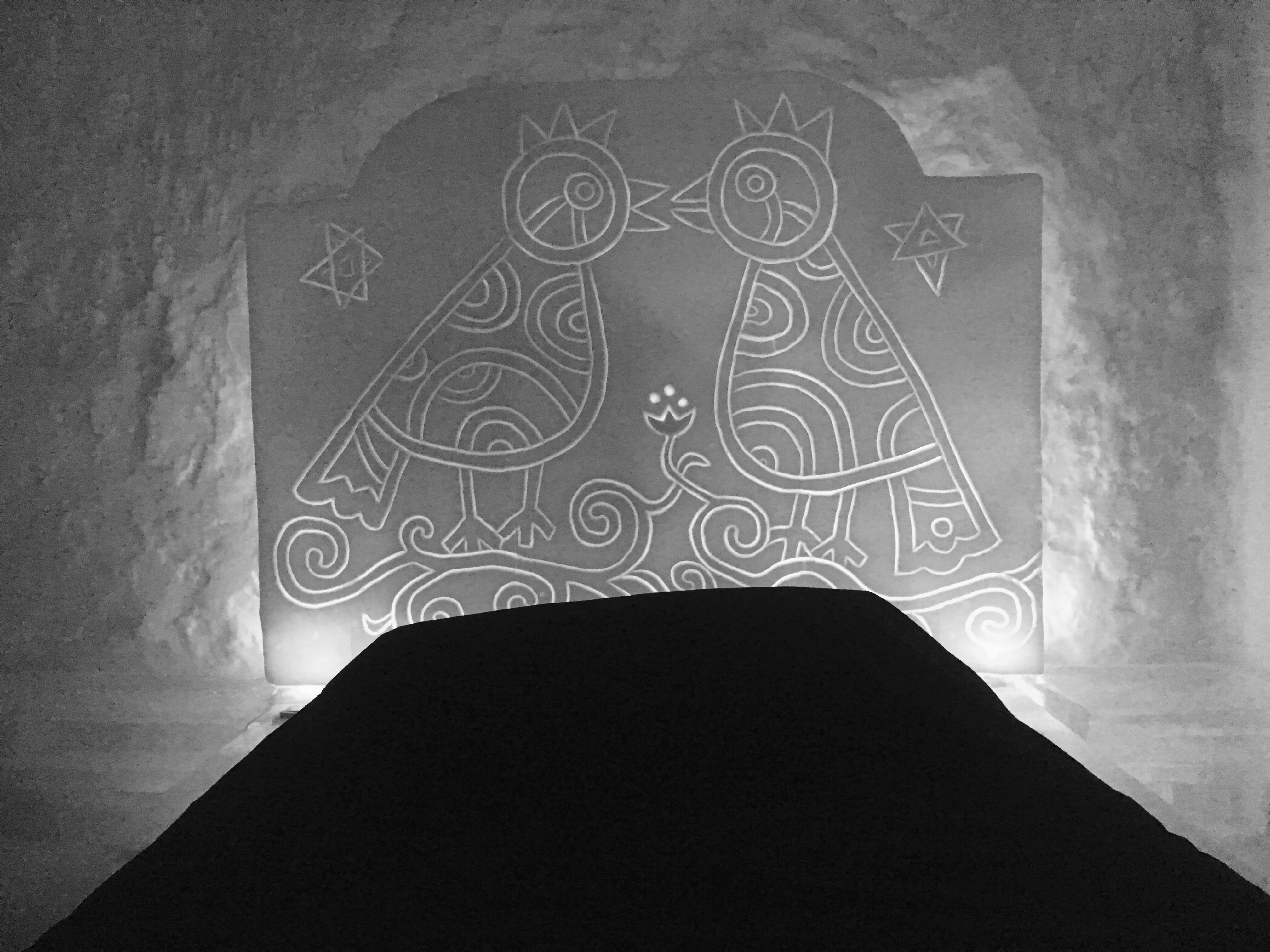 I learned that the Ice Hotel was born as an igloo art gallery housing paintings, but after Arne arrived the idea shifted so that the ice itself became the art, “ephemeral art,” as Arne put it. The ice represents just the most minute sliver of water from Torne and because the hotel rests on the riverbank, in the spring, the water returns to the river.